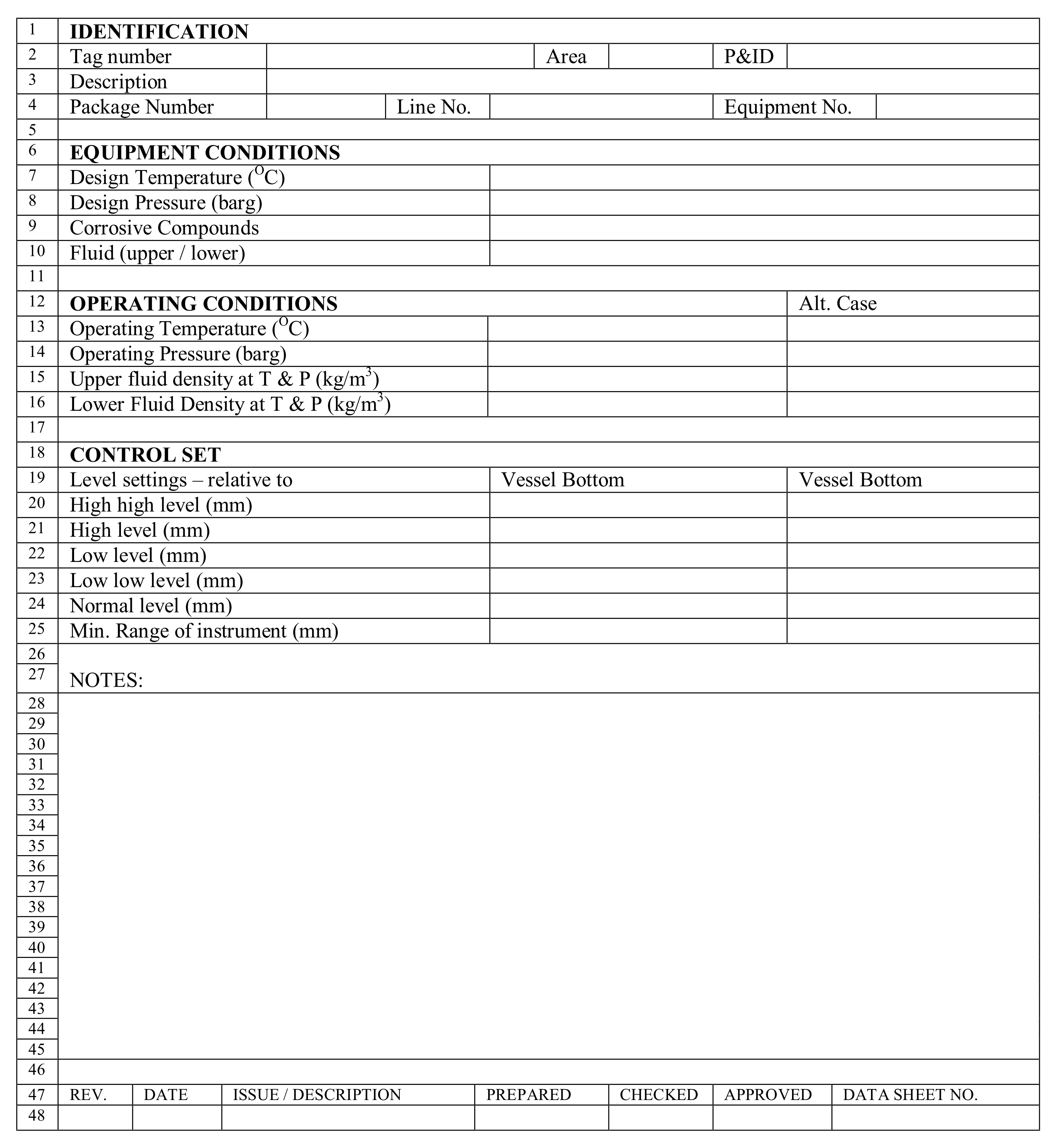 P&ID号及线路/设备:这是测量水平面的容器或容器的标签编号。
