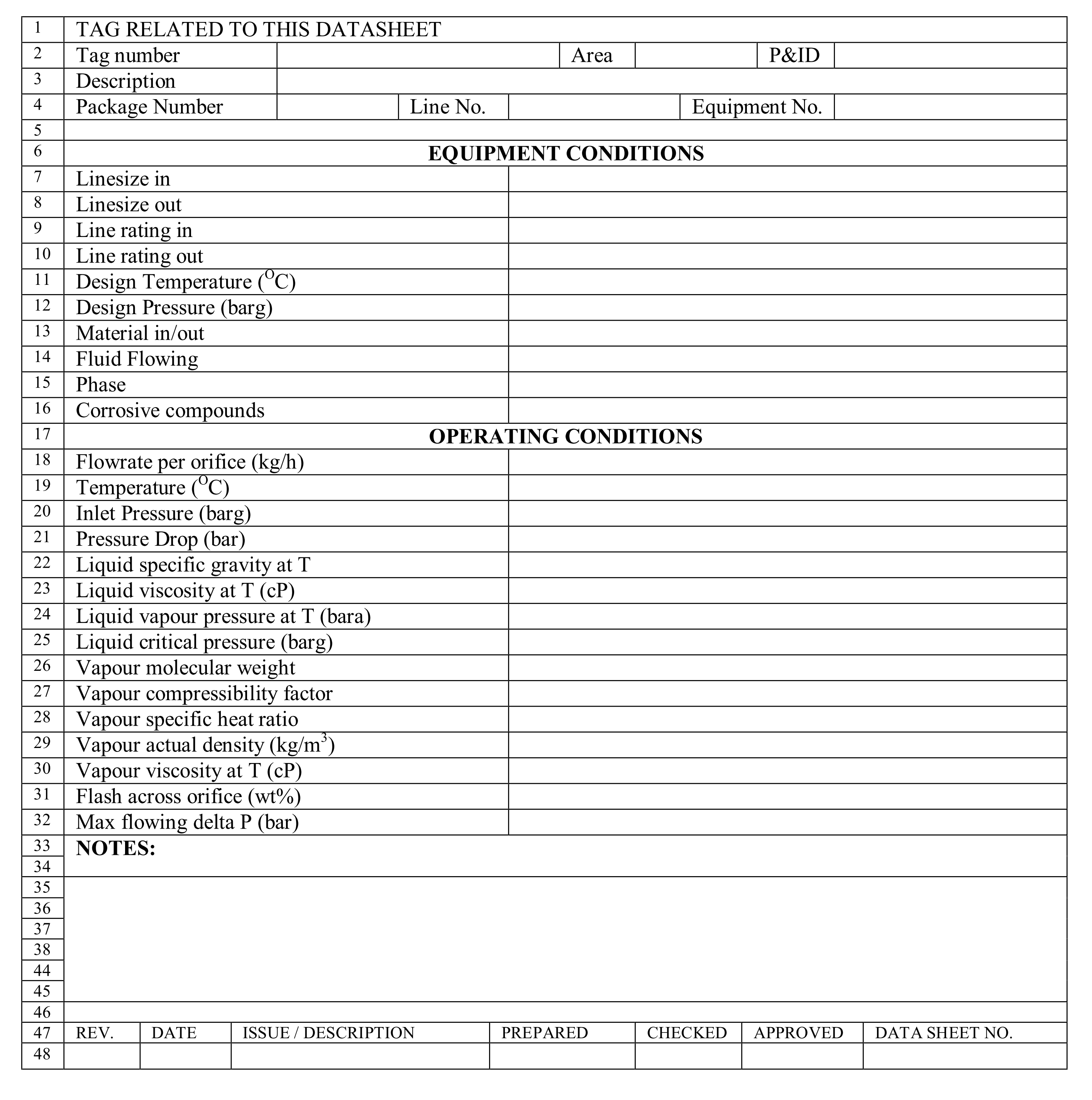 的节流孔板是一种板,用于限制流量和节流孔下游的压力。过程仪表数据表用于仪器工程师准备询价和购买仪器所需的文件。流程数据表将附加到采购订单中,并构成采购订单的一部分。