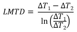 从方程中可以看出,LMTD使用温差的对数平均值,而不是算术平均值。