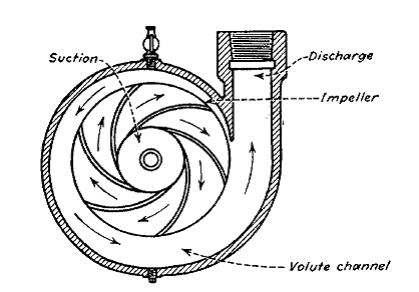 Following figure gives an idea of the basic structure of a centrifugal pump.