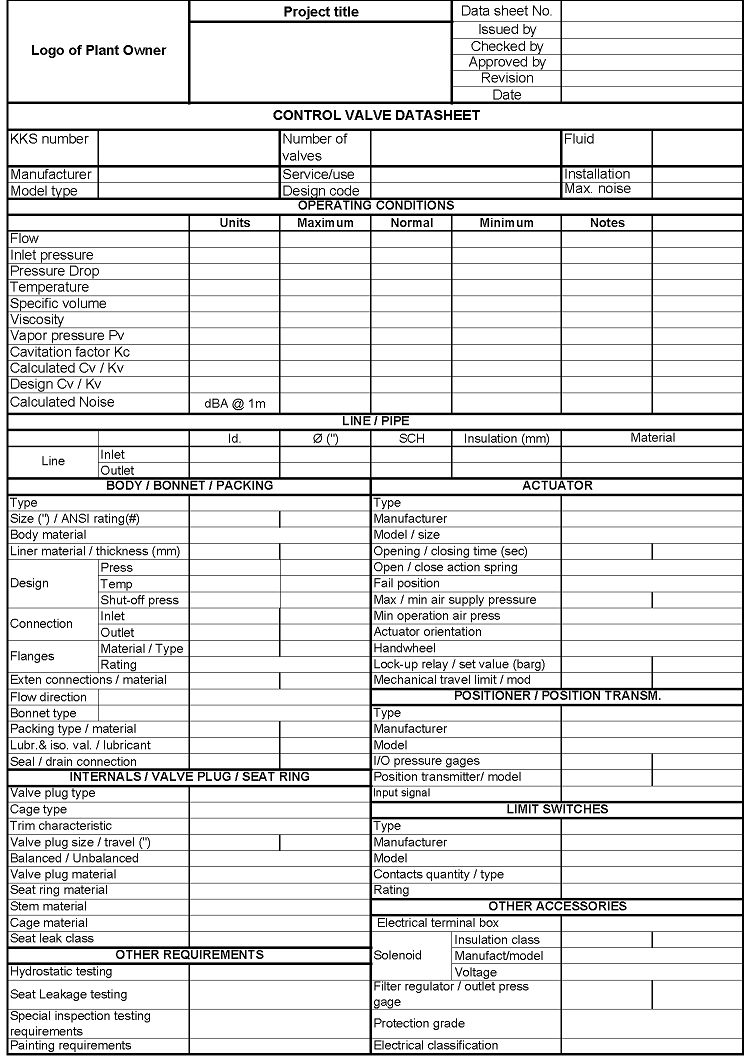 为了能够顺序阀的最佳控制e suited for the application, the user has to provide the valve manufacturer with all the necessary information to select and design a suitable control valve.