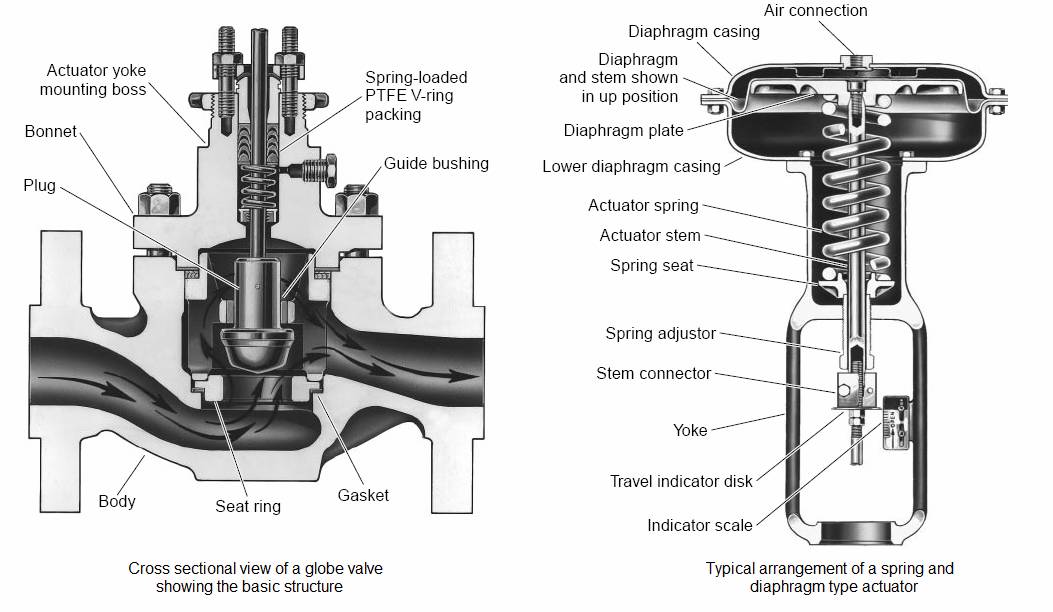 Control valves are elements used in process control loops to adjust process variables such as flow, liquid levels, pressure, temperature etc. Control valves essentially consist of a valve and an actuator, more valve control elements may also be present in certain cases.