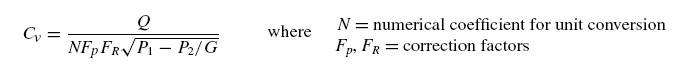 Many flow cases may often fall outside the range of the basic liquid equation mentioned above for Cvcalculation. For these cases a modified liquid equation for Cvcalculation is given as,